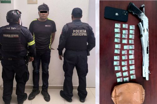Un hombre armado con droga en Jilotepec fue detenido por elementos de la Secretaría de Seguridad del Estado de México (SSEM) y de la Policía Municipal, tras ser sorprendido conduciendo una motocicleta sin casco y a exceso de velocidad. Durante la revisión, los oficiales aseguraron un arma de manufactura artesanal y 33 envoltorios con presunta droga.