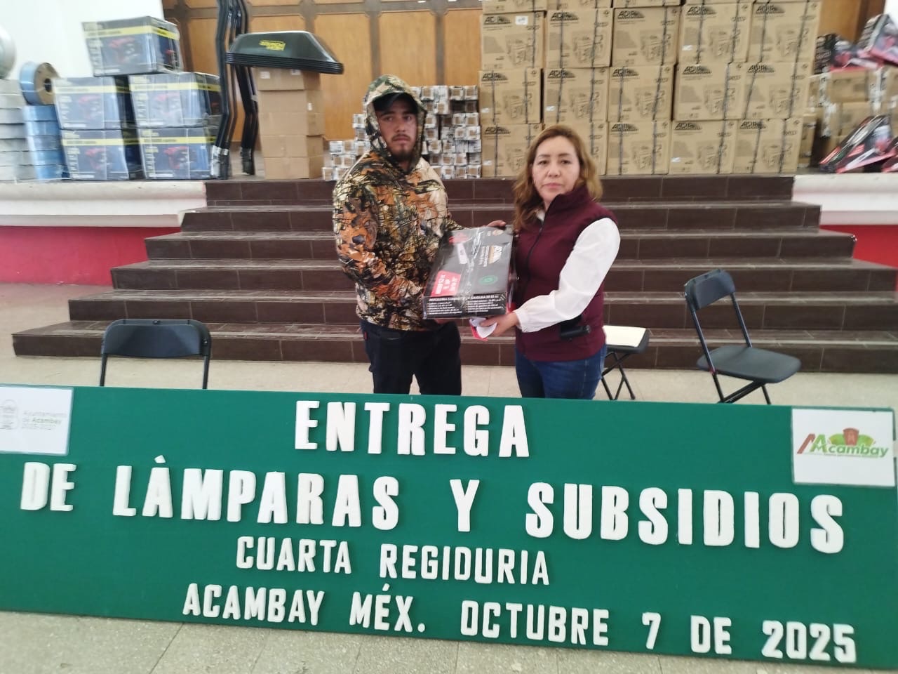 Acambay, Estado de México. – Con una inversión de 158 mil pesos de recursos propios, la regidora Irma Martínez Gayoso, cuarta en el cabildo de Acambay, llevó a cabo una donación histórica de lámparas LED en beneficio de decenas familias de 15 comunidades del municipio.